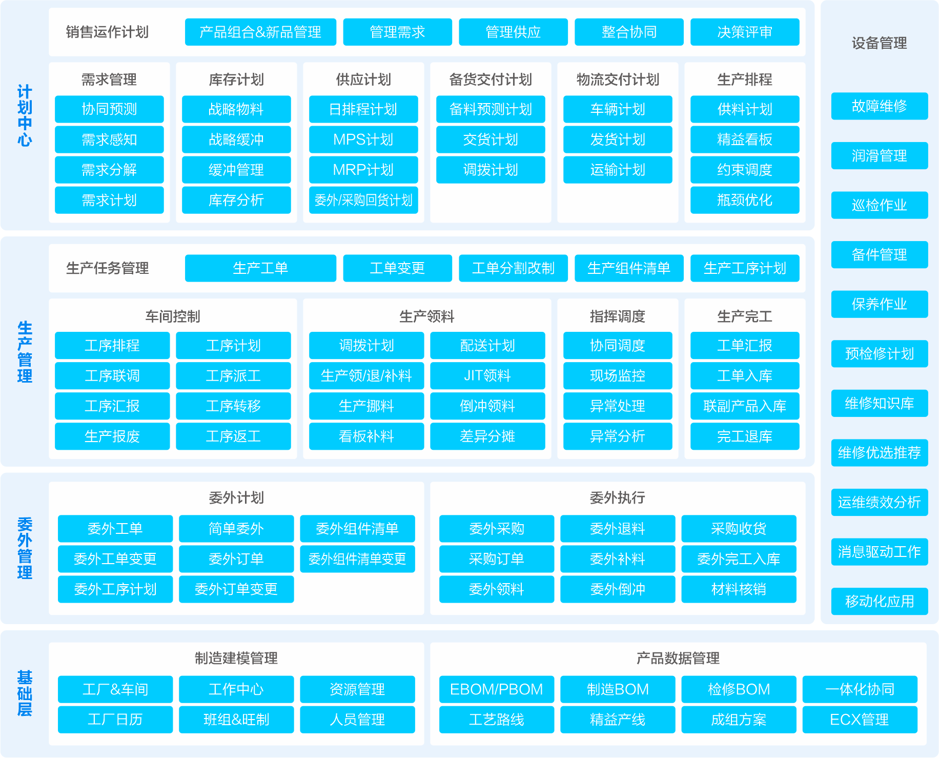 实现Fabless模式的直销及分级分销管控、晶圆供应保障与外协生产的端到端管控与协同;实现半导体制造生产的复杂工序的过程良率控制与批次作业成本的合理管控;实现IDM模式下的全链高效协同与多维精细化追溯